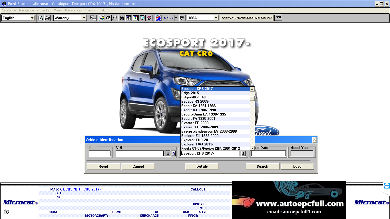 كتالوج قطع غيار سيارات فورد 2020 المواصفات الاوربية Microcat Ford Europe Parts Catalog 2020 Auto Epc Full